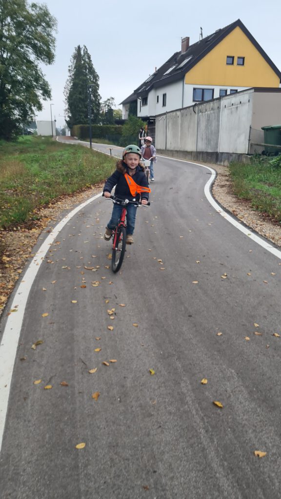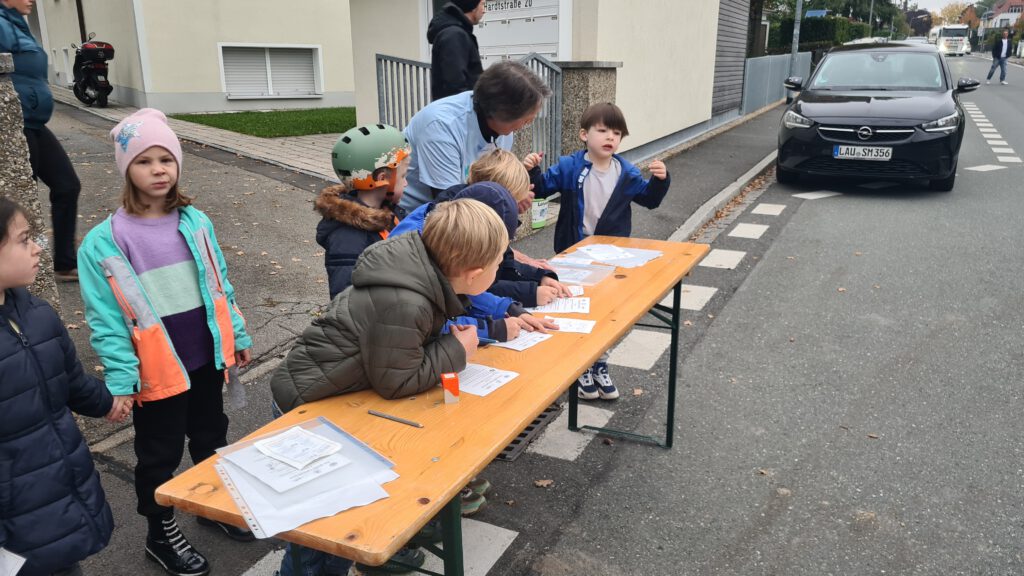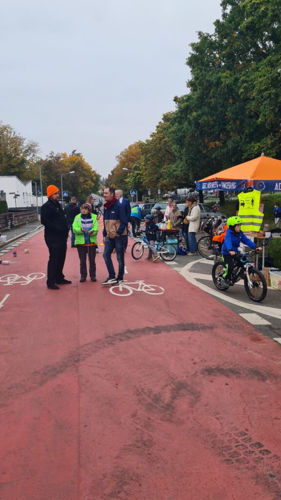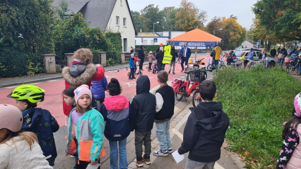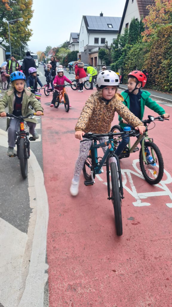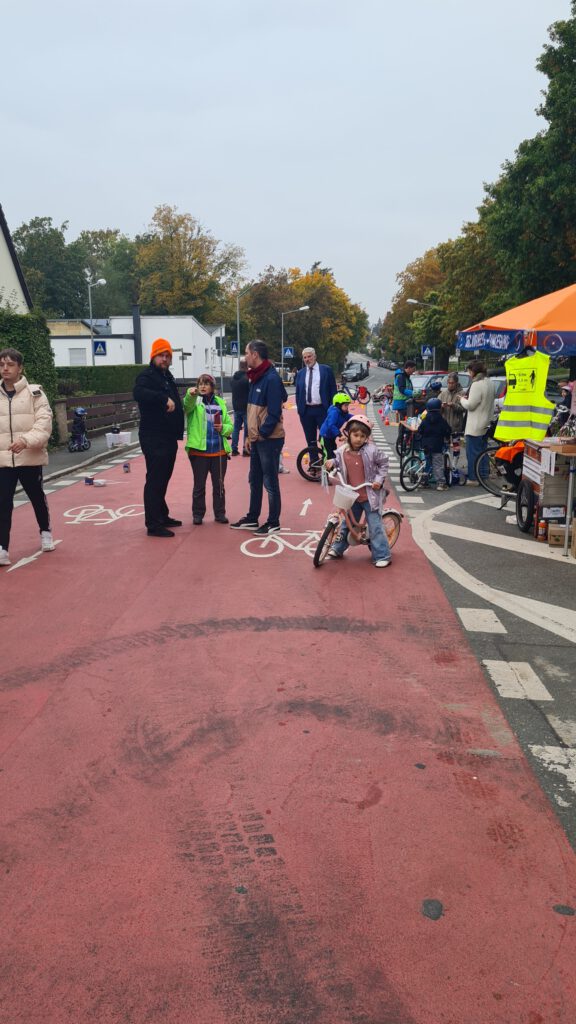 Diese Aktion am Freitag, den 10. Oktober 2025 ist eine Kooperation der Grund- und Mittelschule Kunigund, des ADFC Nürnberger Land, der Fahrradwerkstatt des Café SCH-LAU e.V. und des FabLab aus Schnaittach. Dafür wurde die Fahrradstraße von der Ahorn- bis zur Lärchenstraße gesperrt.