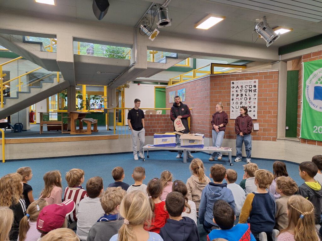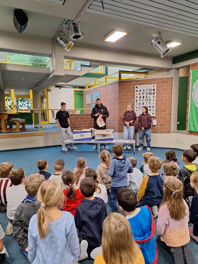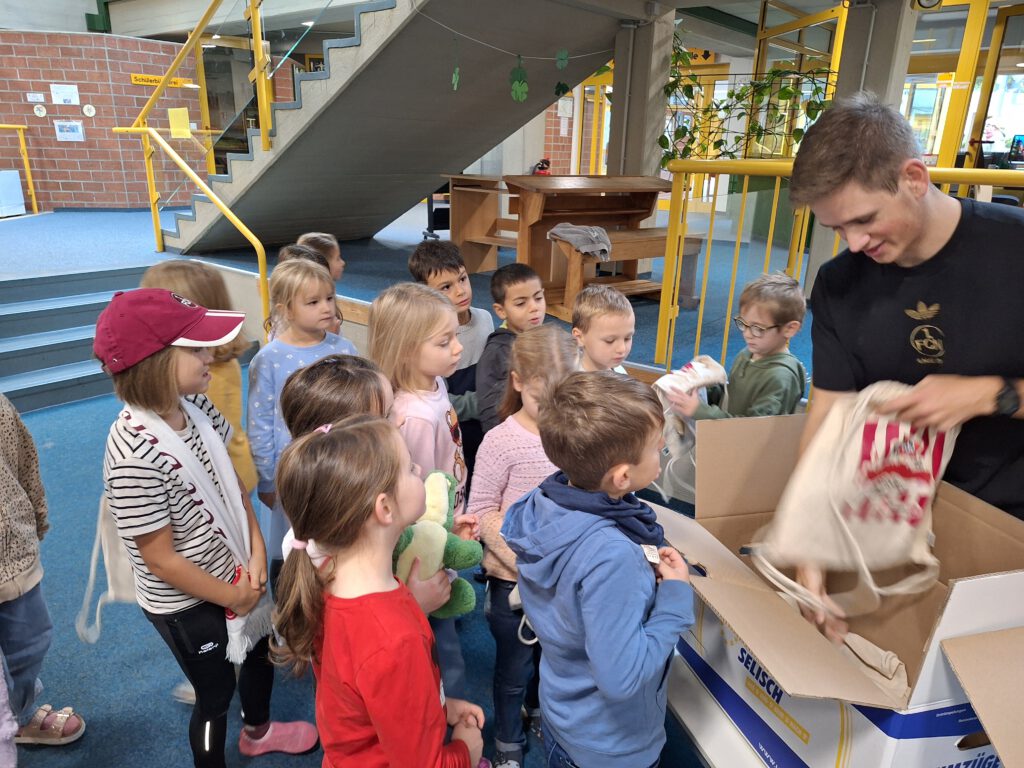 Am 16. Oktober 2025 besuchte der 1. FCN unsere Erstklässler. Zwei Profispielerinnen stellten sich den vielseitigen Fragen der Kinder, bevor es einen Rucksack voller Fanartikel als Geschenk gab! Darunter befand sich sogar ein Freiticket für ein Spiel des 1. FCN. Ein Erinnerungsfoto durfte natürlich zum Abschluss auch nicht fehlen!