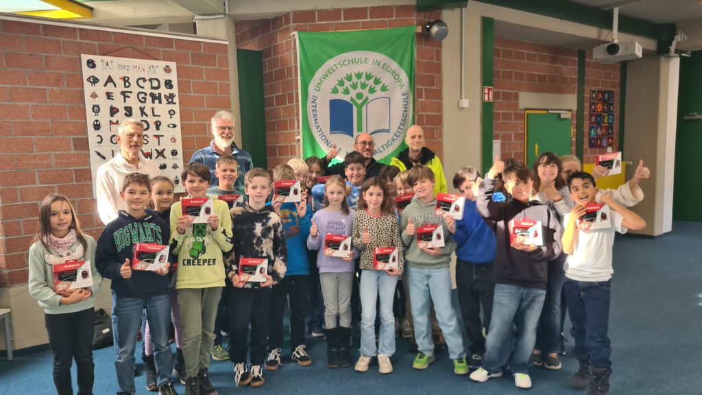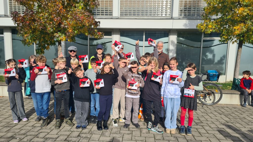 Dieses Angebot des ADFC Nürnberger Land leiteten wir an die Eltern der Viertklässler weiter. Denn die waren gerade dabei, ihren Fahrradführerschein zu machen. Das Angebot wurde sehr gut angenommen und so konnten 43 Lichter-Sets an die Kinder ausgegeben werden.